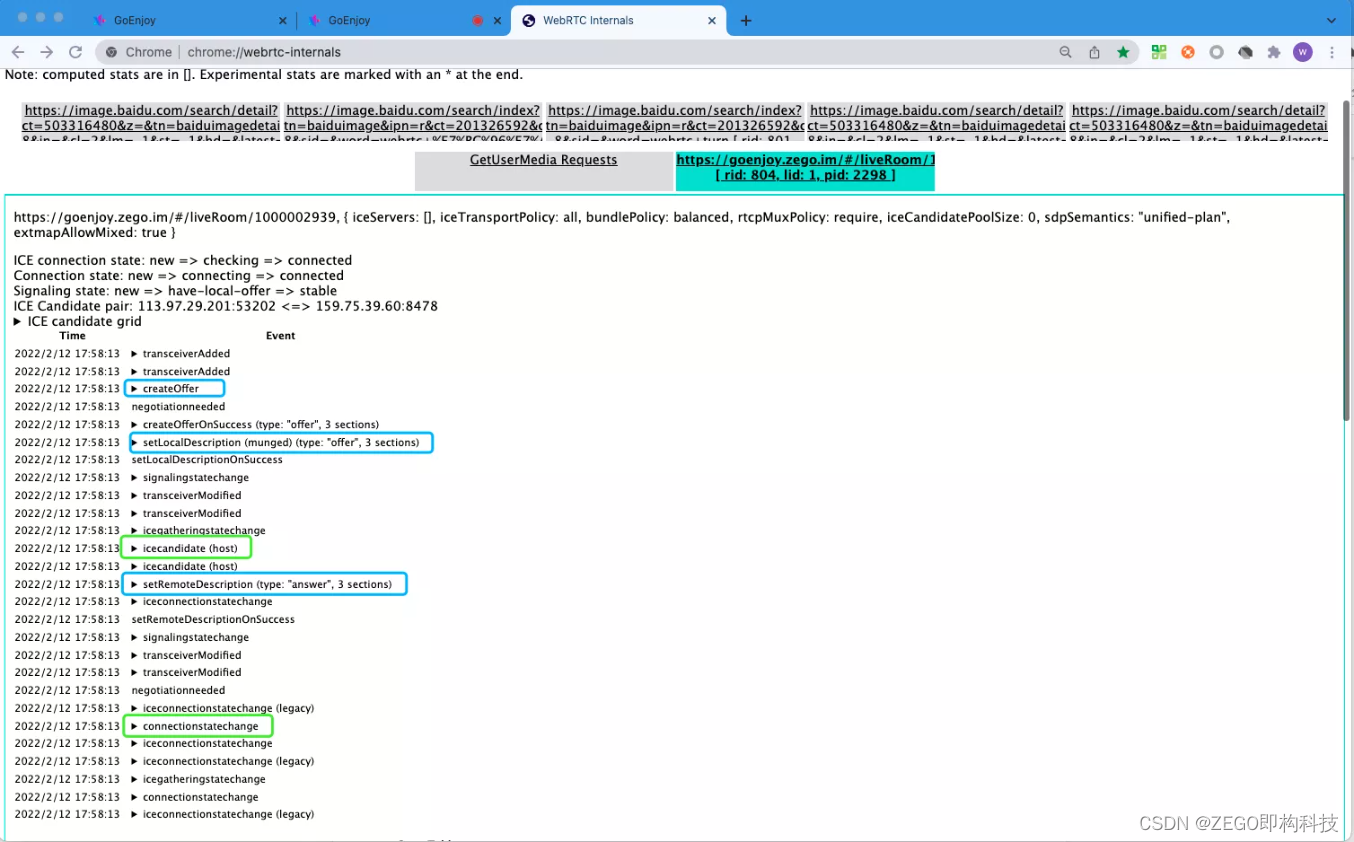 - 另打开一个tab页面,输入: chrome://webrtc-internals/