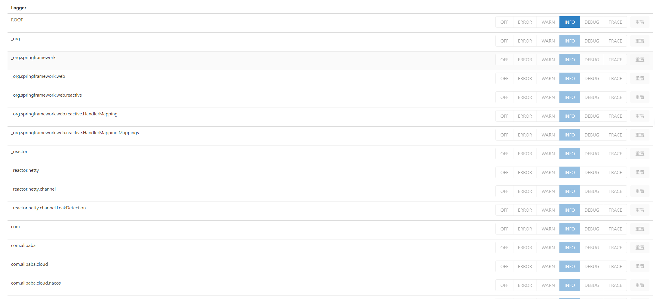 Spring Actuator 支持动态调整日志级别。可以具体到某个类或包。